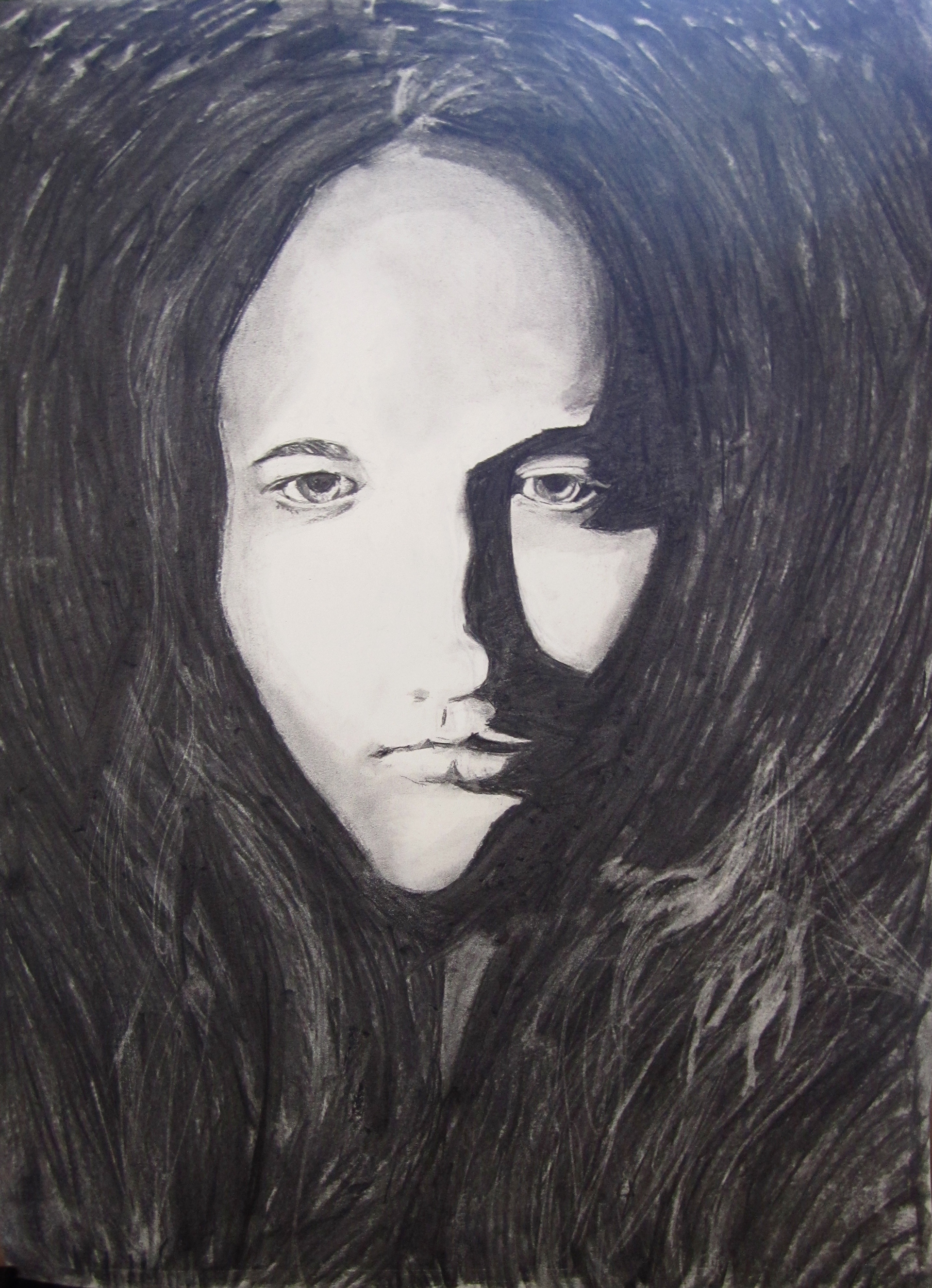 Large scale charcoal self portrait titled "Midnight Snack".